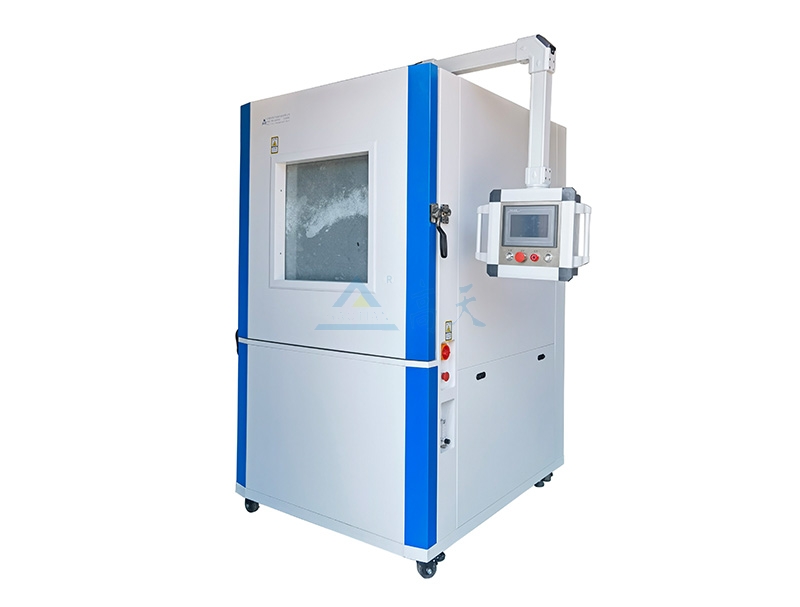 不鏽鋼內膽,外殼不鏽鋼,台灣產數顯溫控儀表控製。除符合GB4208-93標準中的圖2規定以外,並設有加熱器和控溫裝置。不鏽鋼內膽和外殼之間加設保溫層,丝瓜视频在线观看大門附觀察窗,大門下部為電氣控製麵積,模擬砂塵的滑石粉置於丝瓜视频在线观看下部料鬥。利用循環風機和自動震擊器將滑石粉通過75微米方孔的網吹入工作室上部,促使試驗空間形成高密度塵霧狀,對試品進行試驗。