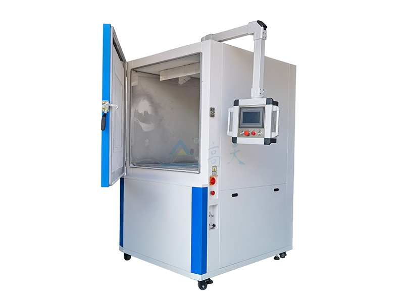 不鏽鋼內膽,外殼不鏽鋼,台灣產數顯溫控儀表控製。除符合GB4208-93標準中的圖2規定以外,並設有加熱器和控溫裝置。不鏽鋼內膽和外殼之間加設保溫層,丝瓜视频在线观看大門附觀察窗,大門下部為電氣控製麵積,模擬砂塵的滑石粉置於丝瓜视频在线观看下部料鬥。利用循環風機和自動震擊器將滑石粉通過75微米方孔的網吹入工作室上部,促使試驗空間形成高密度塵霧狀,對試品進行試驗。